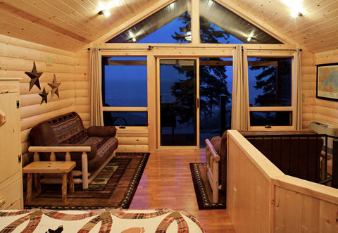This cabin now has it all with its warmth, comfort, and a stunning view of Lake Superior. The Lodge accommodates up to six guests. Nightly rates are based on one or two people. Each additional guest requires a $18 per person, per night fee.
